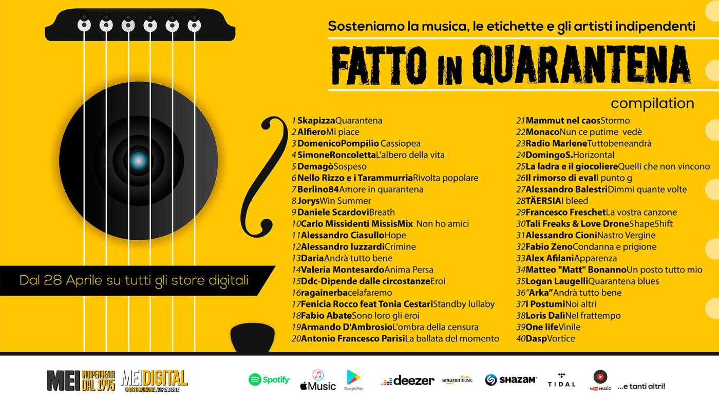 Cassiopea entra ufficialmente a far parte della compilation ‘Fatto in quarantena’ promossa dal MEI. La canzone è nella rosa dei 40 artisti selezionati per l’occasione. Ringrazio il MEI per l’opportunità. Qui il link per poter ascoltare la playlist direttamente su Spotify.
